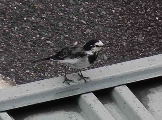 下の物置の屋根をイソヒヨドリのオスが、移動中