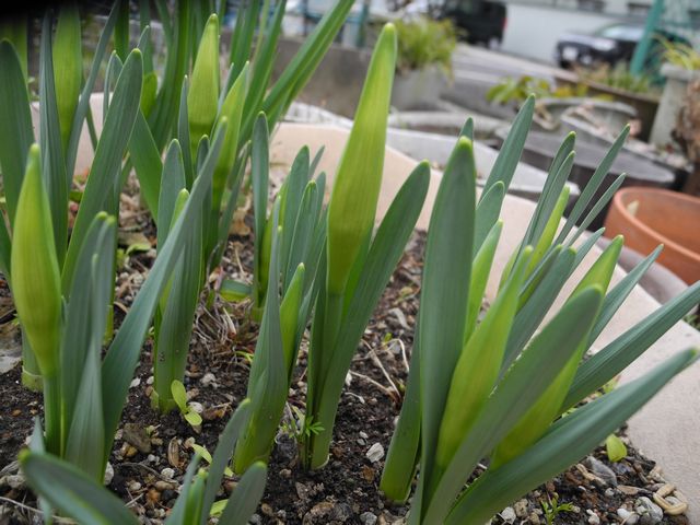 ラッパスイセン・アイスフォーリスの蕾が上がってきました。