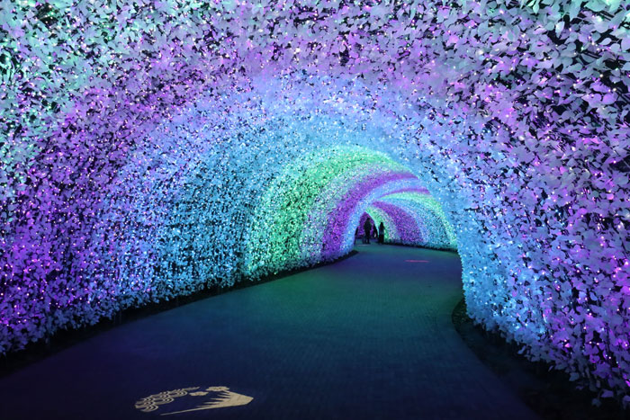 今日もなばなの里から毎年新しく出来る100mの光のトンネル波のお届けです。