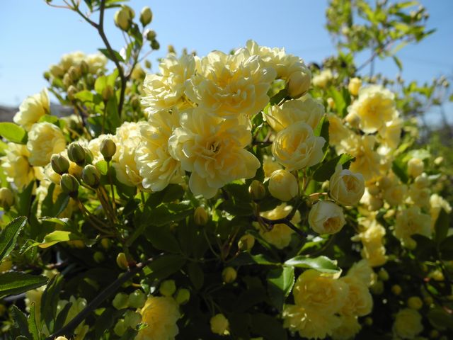 昨日の散歩道に咲いていたモッコウバラです。