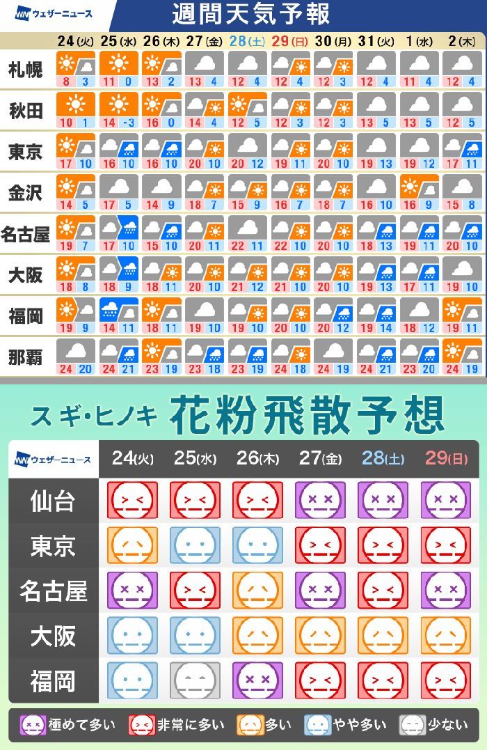 ・25日(水)は西日本や東日本で雨
