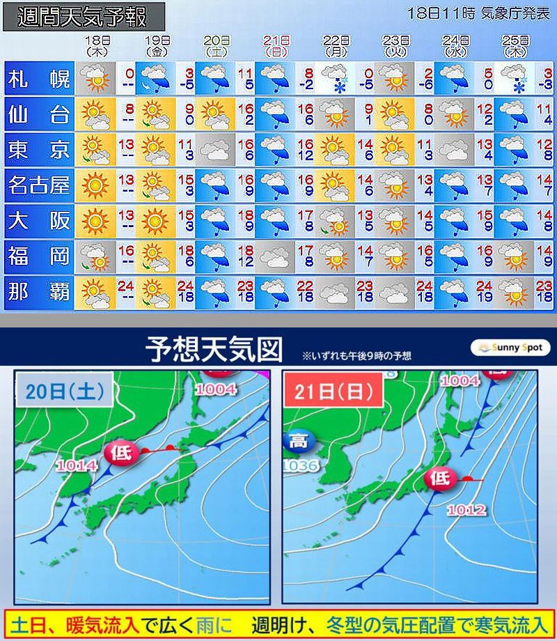 しかし、土日は広く雨となり、