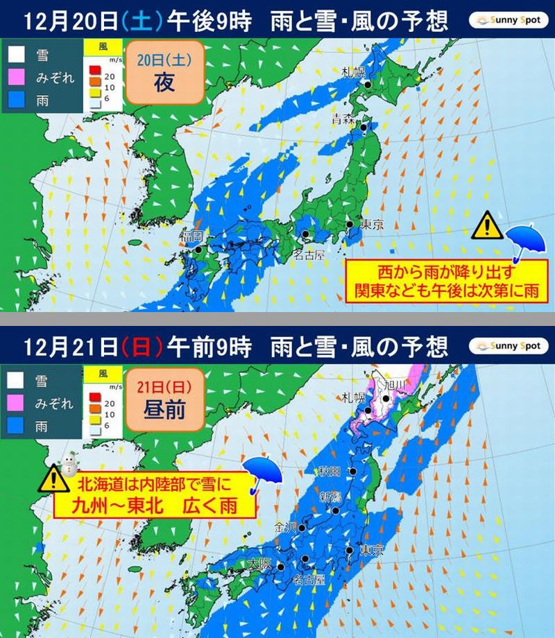 どうも土日は雨、クリスマスも広く雨に ・・ホワイトクリスマスになる所は・・