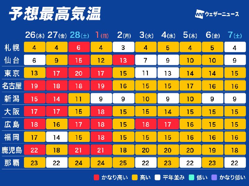 今日から暖かい日が続くようです