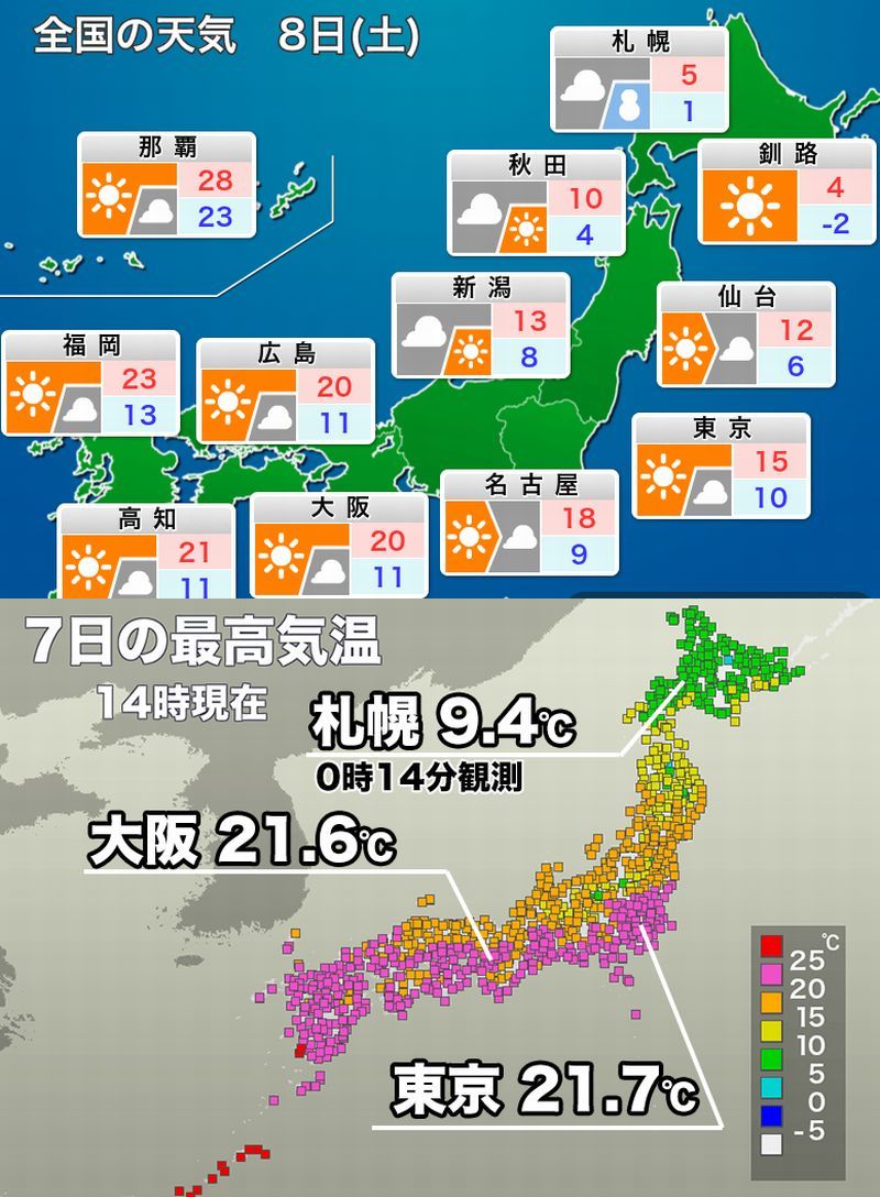 北海道では立冬らしい寒さになりましたが、関東から九州にかけては晴天で、