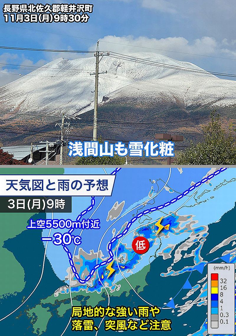 昨日3日(月)文化の日は一時的に西高東低・冬型の気圧配置となりました。
