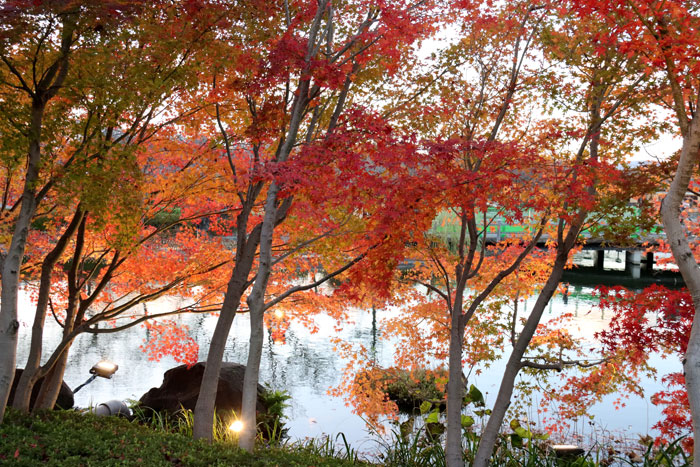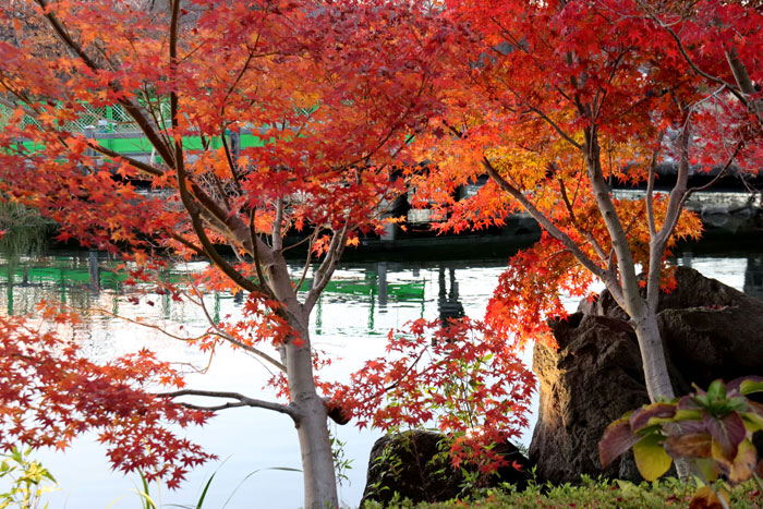 今年最後の紅葉でした。池に写る紅葉が美しかったです。