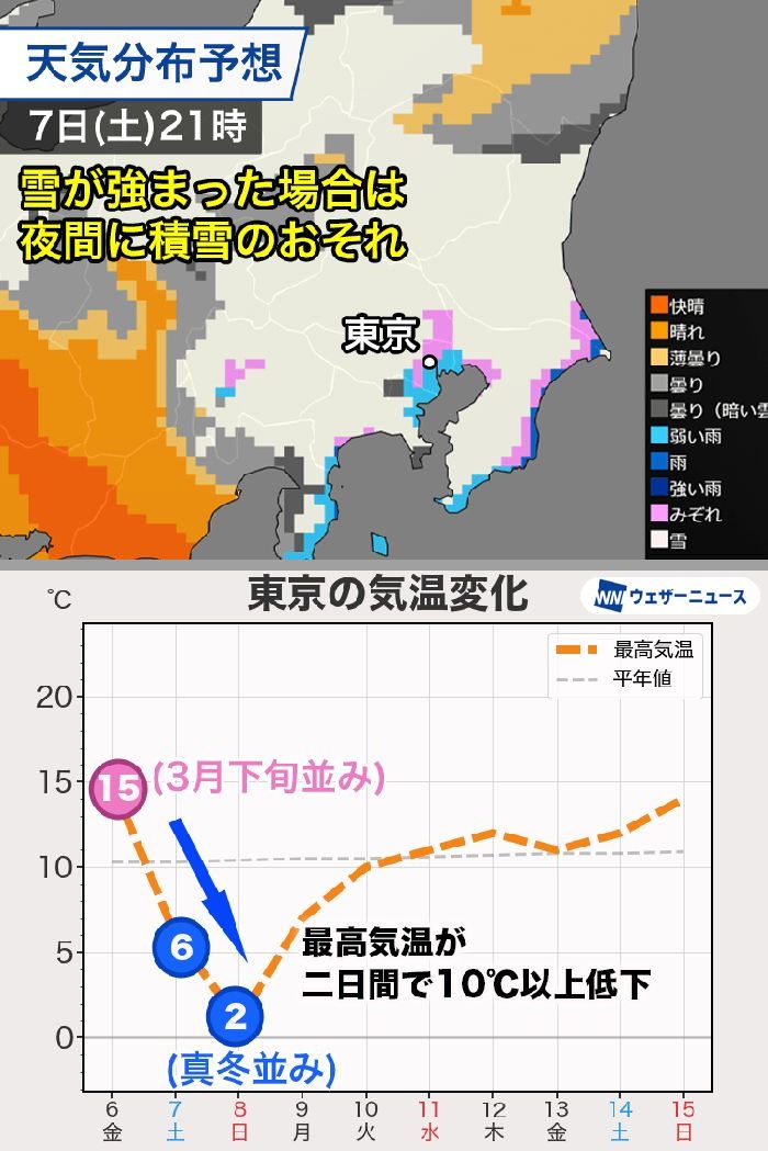 ・関東も雪雲発達 東京で積雪の可能性有り