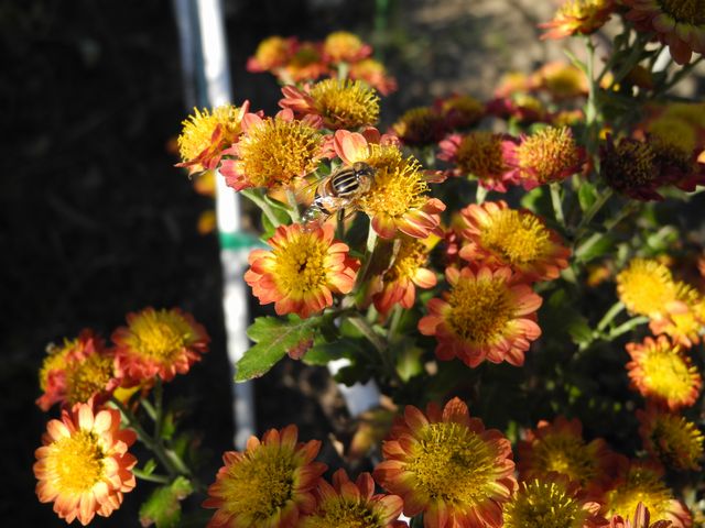 そんな中、満開の小菊に小さなハチさんがたくさん来てました。
