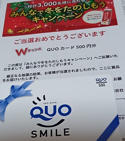 500円のクオカードが当たりました