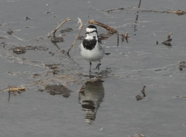 水が入り始めた田んぼでは、ハクセキレイが元気に動き回っています。