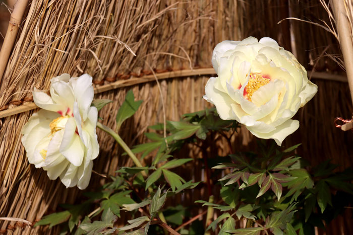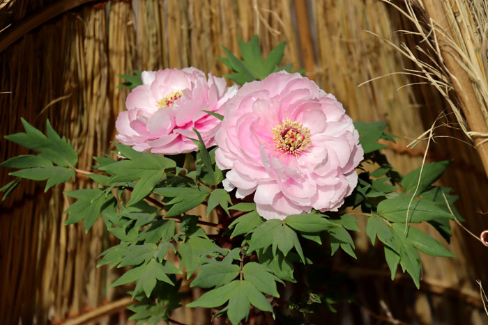 寒い中 藁の囲いの中に入って綺麗に咲いている冬ボタンが風情がありました。
