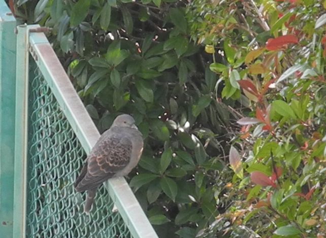 キジバトも風を避けて、長い間寒そうに止まっていました。