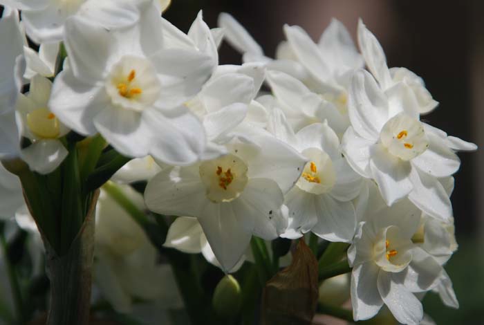 ニゲラ(クロタネソウ)の蕾 キヌサヤ、房咲きスイセン