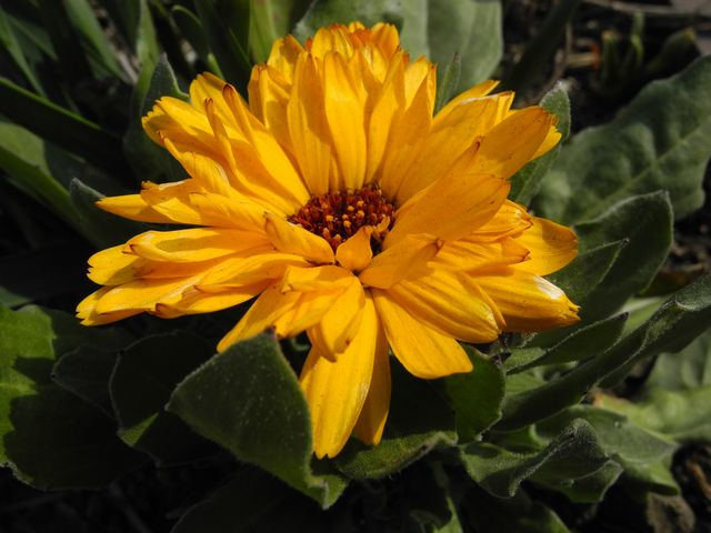 少し離れた所の畑の隅に毎年植えられているキンセンカ
