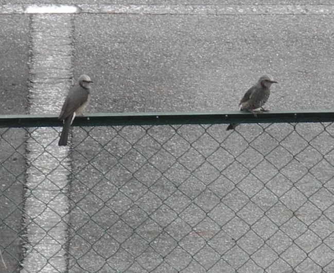 台所の窓を開けると、仲良く2羽が止まっていました。
