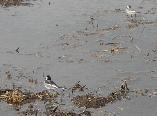 水が入り始めた田んぼでは、ハクセキレイが元気に動き回っています。