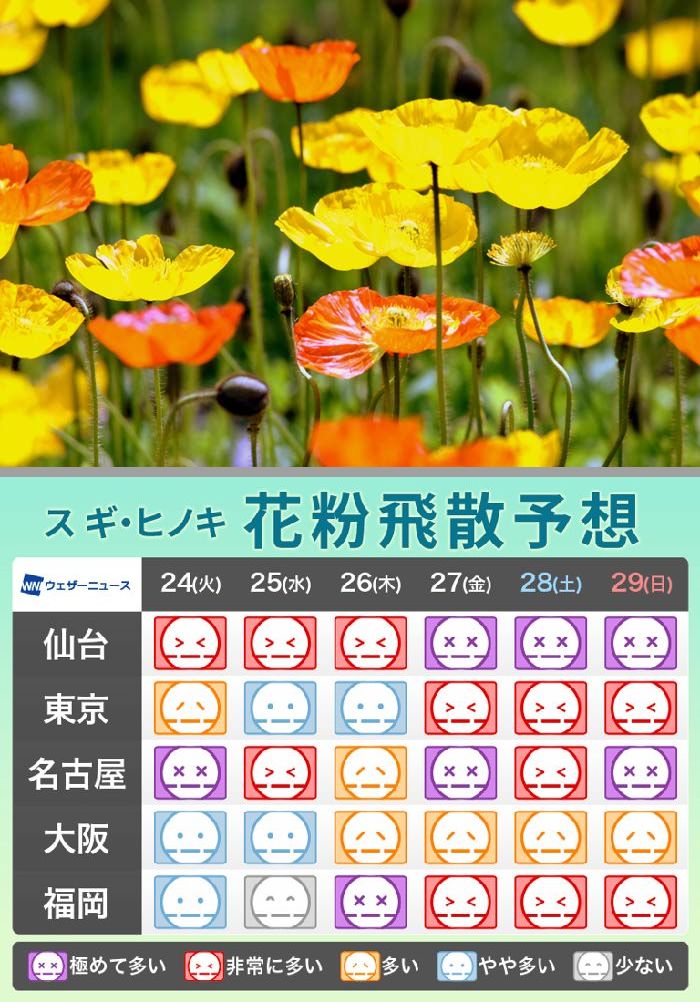 本州・四国・九州の全域が花粉の本格飛散シーズンに入っています。