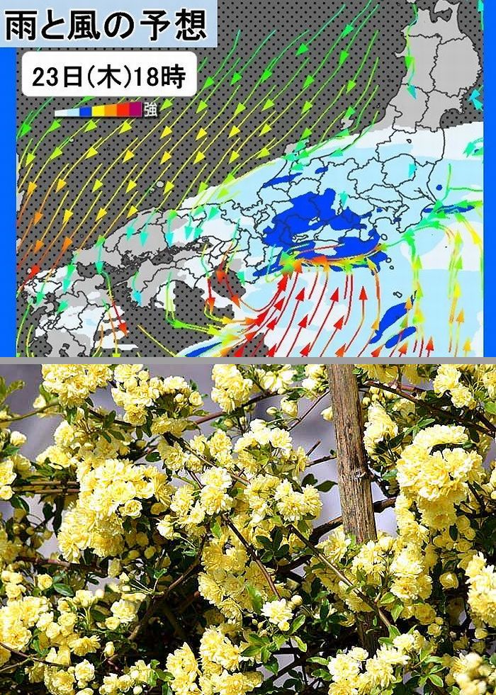 雨で、気温は大幅ダウンの予想です、最高気温が17Cしか上がらないようです。