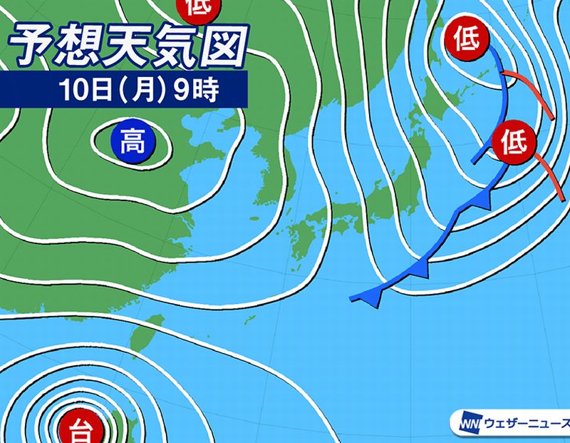 これから大陸からは高気圧が張り出し、日本付近は冬型の気圧配置になります。