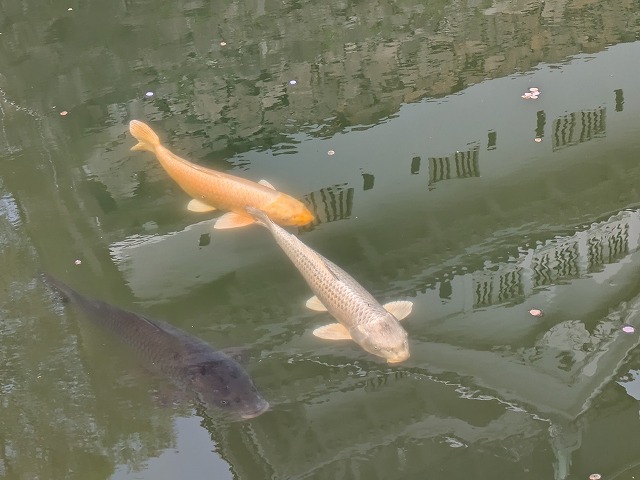 小倉城から・・・お堀に黄金の鯉がおよいでいました。
