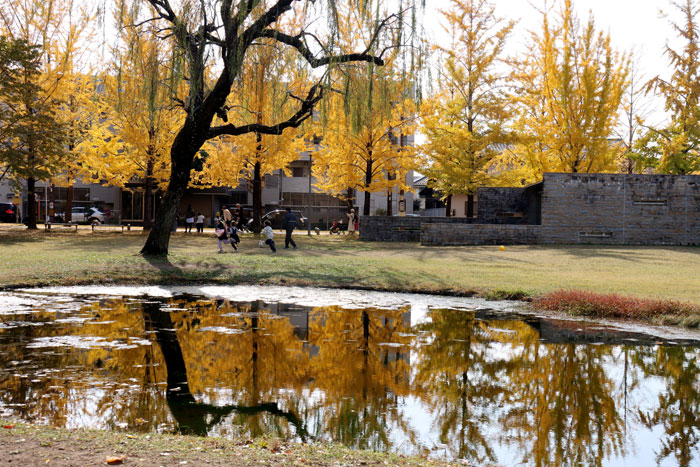 今日も各務原の学びの森から銀杏並木の他に池に写る所もあり綺麗でしたのでご覧下さい。