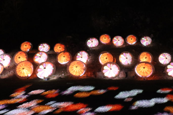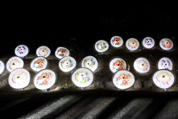 今日も「ぎふ灯り物語」のイベントから和傘が沢山並べられて光が変化するプロジェクションマッピングが見れました。