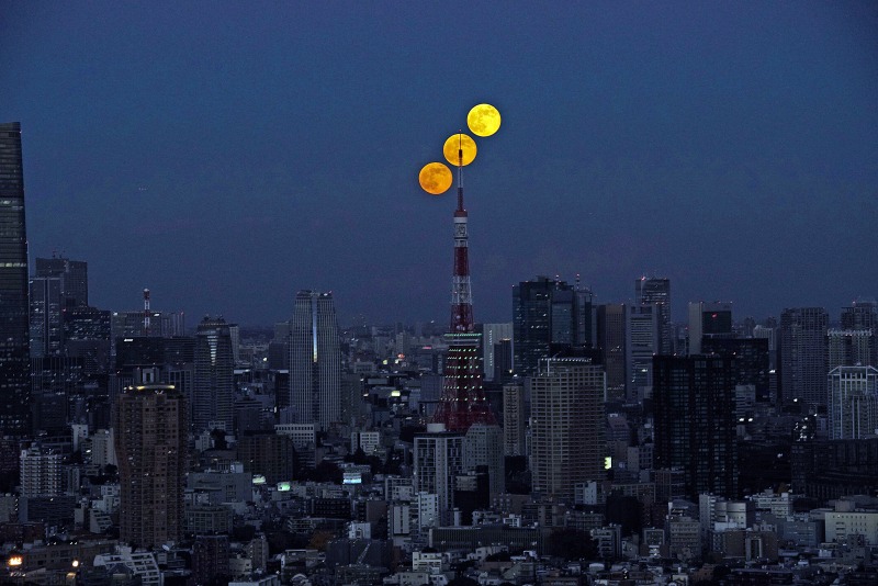 12月5日今年最後のスーパームーンと翌日の十六夜月を撮りました。